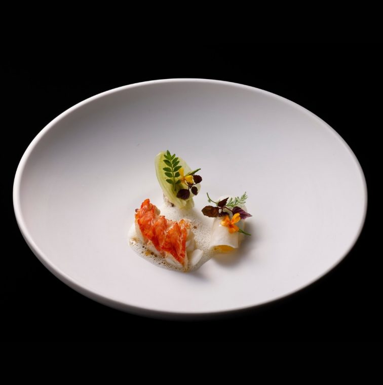 伊勢海老と貝、はちみつ、山菜、味噌、豆腐を用いたガストロノミー