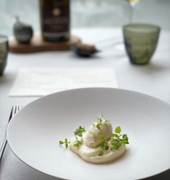 Fukinoto ice cream, airy liquorice pâtissière, wild herbs